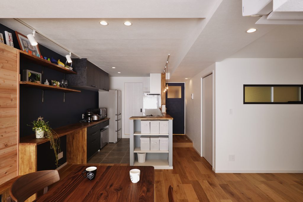 キッチンとダイニングテーブルをつなげることで、料理をすぐに運んだり片付けたりできるようになりました。