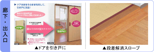 具体的には、建物内外の段差をなくしたり出入口や廊下の幅を