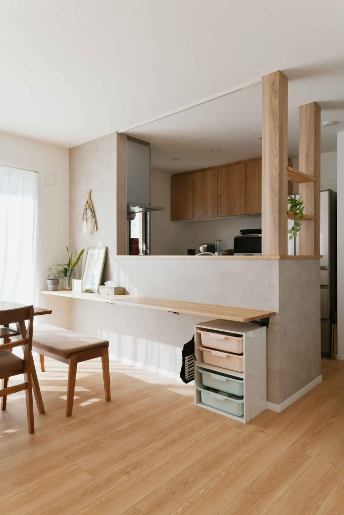 キッチンは対面型でしたが、開口部が小さく閉鎖的でした。リビング側がすっきりと見渡せるように、壁を取り払うことで目が届くキッチンになりました。