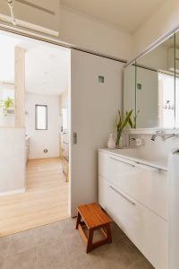 棚や扉はあえて設けず、将来お子様が大きくなっても使い方を変えられるようにしています。