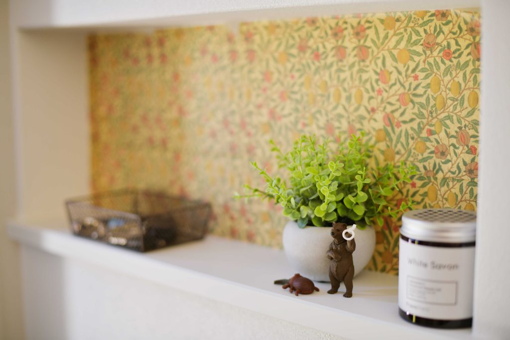 リビング併設の和室にあった押入はおもちゃ置き場として使えるようにオープンスペースとしました。