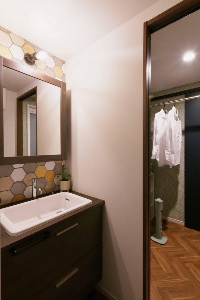 玄関~リビング~洗面とぐるっと回れる憧れの回遊動線を実現しました。