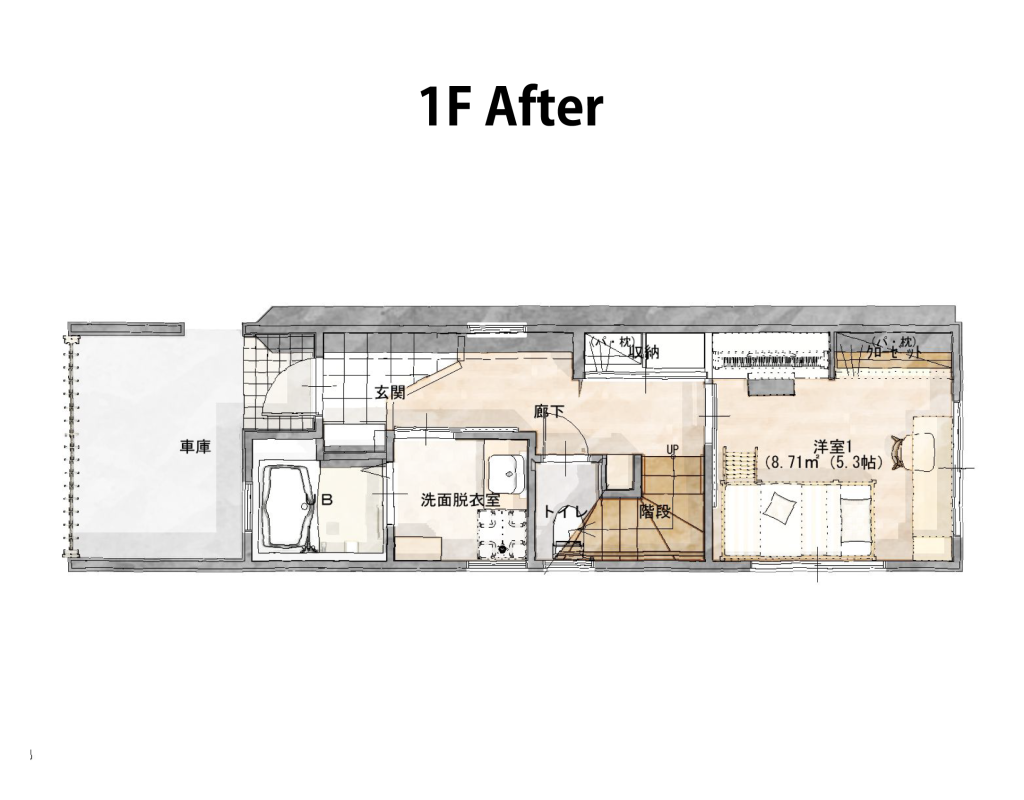 床材:大建工業「MYフロア ラスティックペカン柄」