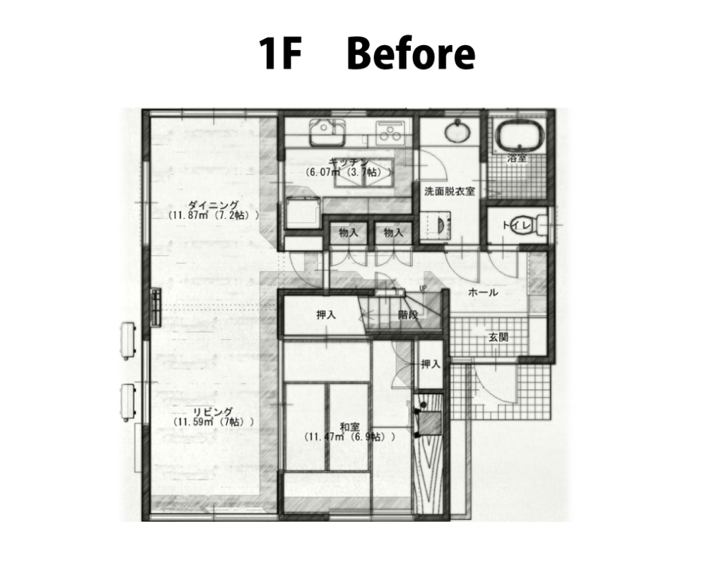 家族がみんなリビングを通るので必ず顔を合わせる間取りとなった。キッチンとリビングとダイニングの配置もよくTVを見ながら家族を見守りながらお料理ができるのも気に入っている。