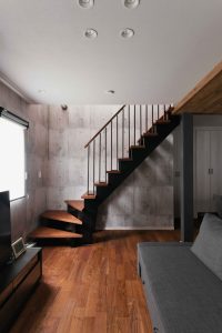階段をリビングに取り込むことによって無駄なスペースなく面積を有効活用できた。
