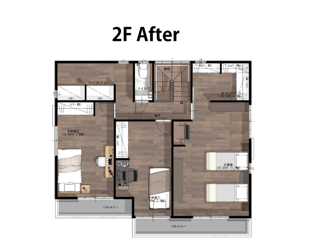 寝室、廊下、外構、屋根、外壁、キッチン、浴室、トイレ、洗面、リビング、ダイニング