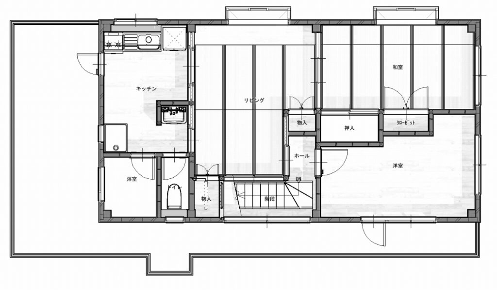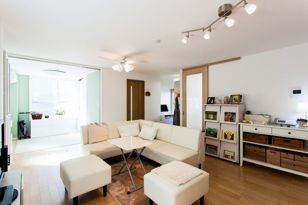 ご主人様のご実家に同居することになり、今回のリフォームの検討が始まりました。ご家族がとても仲が良く、近くにご親戚やお友達も多い上、アクティブで多趣味なご夫婦。人をたくさん呼べたり、卓球台を置いて練習が出来るような広いリビングをご希望でした。また、そんなリビングを見ながら料理が出来る、対面キッチンをご希望でした。