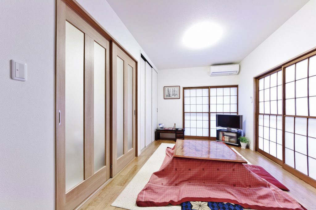 家全体を耐震補強するとともに、1階を半分に分けて、親世帯と子世帯の生活空間を確保。さらに2階は人数の多い子世帯とし増築して個室を3部屋設けました。