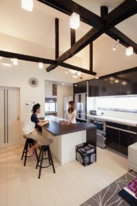 表面に出た構造材は墨色塗装でバランスよく残しました。