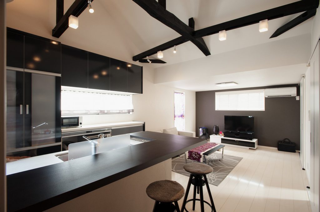 ダークカラーをポイントとして、明るく開放的な居住空間を作る計画をたてました。