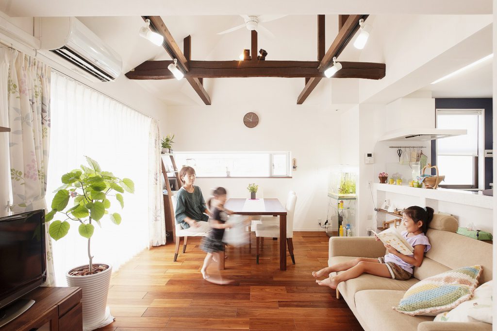 天井を外し、屋根の高さを活かしたLDK・見晴らしのいい南側の開口を広げ、LDKとつながるバルコニーの設置などの提案をしたことで物件購入とリフォームの依頼を同時に決めていただきました。