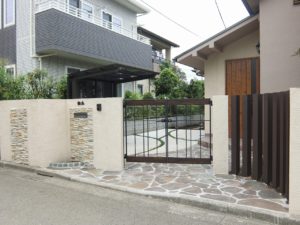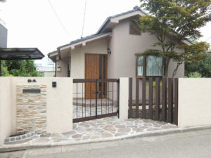 ご依頼頂いた当初は使い勝手の悪い水廻りや和室をリフォームされたいとのご要望でしたが、築年数も40年以上経っていたこともあり、全体的に手を入れることとなった。100㎡以上ある広い住宅であったが、普段いるお部屋が東側からだけしか採光のないコタツのある6畳のダイニング兼リビングであった。とてももったいないと思い、ダイニングからリビング、和室までを大胆につなげた空間とすることで、とても開放感のある一日中明るいLDKとなった。又外にあった物置を撤去し、玄関横に土足では入れる納戸を設け、奥様の趣味の陶芸の土などの材料をしまえる空間となった。 外回りもこれを期に全体的に直すこととなり、広い庭を生かしたゆったりとした玄関へのアプローチや門扉廻り、塀なども交換し落ち着いた外観に仕上がっている。