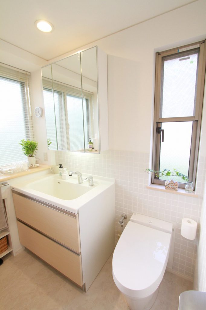 洗面化粧台はわんちゃんが散歩から帰ってきたら足が簡単に洗えるようにトクラスのマルチユースボールを採用、ミラーはサンワカンパニー、トイレはLIXILのサティスを入れました。全メーカーを取り扱える強みを生かし、お客様の要望に合う商品のご提案ができました。