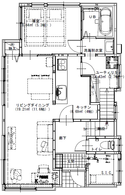 お風呂に入っている時間が好きなのでお風呂を大きくしたい、これからお子様ができた時に安全で使いやすいようにレイアウトを工夫したいと、古いのでとにかく床冷えがして寒いので、断熱をしっかりしたいとのご要望でした。
