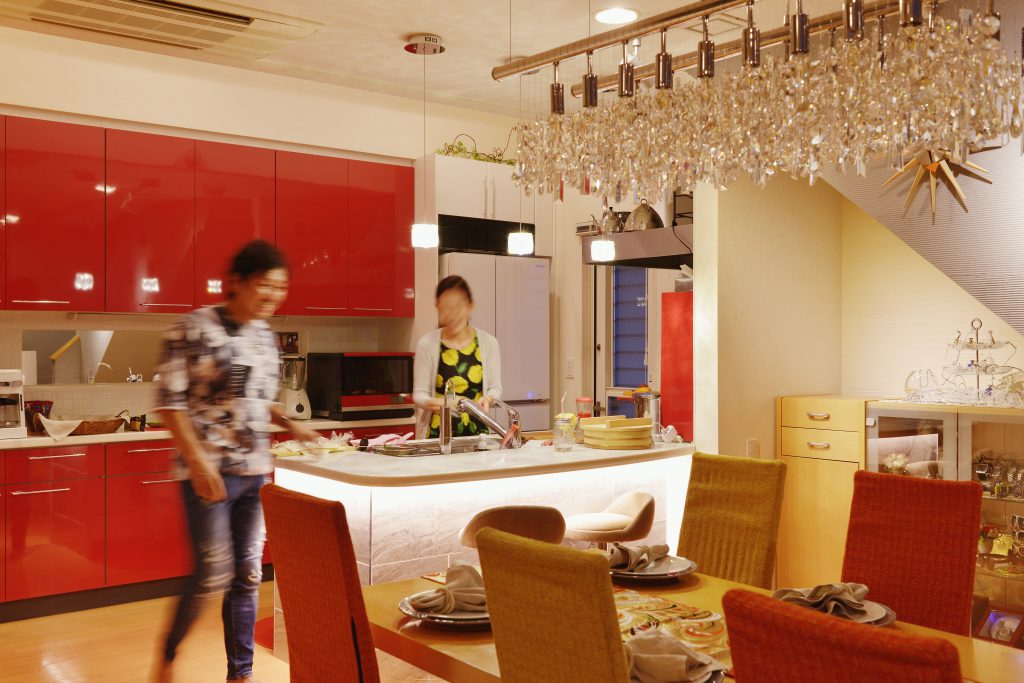 娘様のご結婚を機に、新築時には出来なかったことをリフォームでやりたいとお考えになられました。「キッチンは絶対、赤」「モデルルームの様なリビングにしたい」「気分がアガる家にしたい」「義父に作ってもらった家具が映えるようにしたい」が揺るぎのないご要望でした。