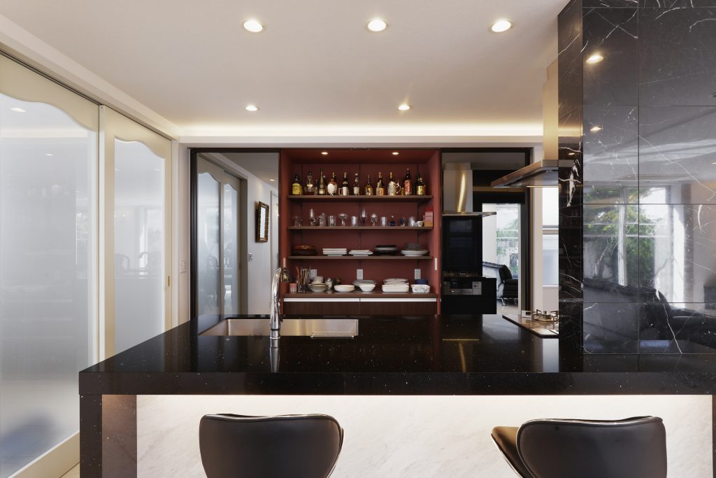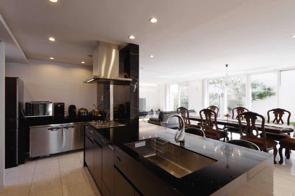 育ち盛りのお子様3人の子育てに毎日お忙しいお2人。お料理や調理家電にこだわるお2人のために、大空間に負けない存在感のキッチンをつくりたいと思いました。