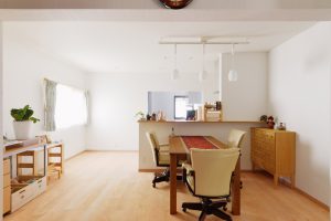 居間として利用されている和室とダイニングキッチンが離れていたので、間取りを変更し、広々としたLDK空間にしました