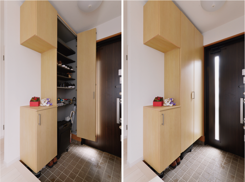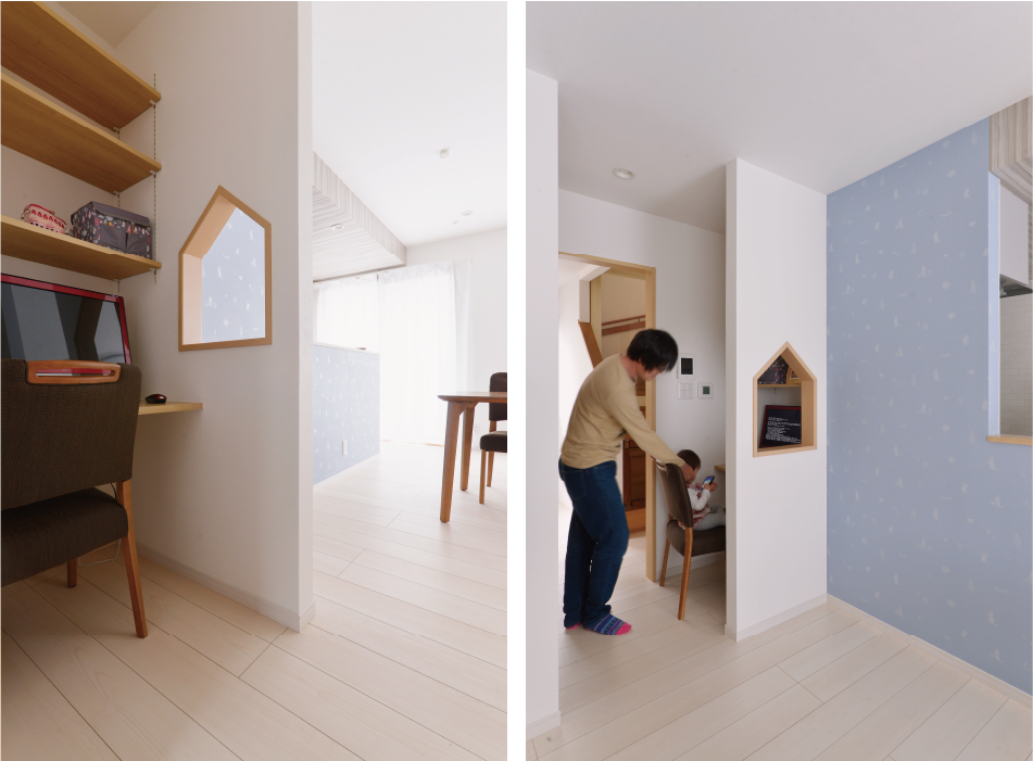 当初お父さんは間取り変更に反対していました(構造面が心配で)ので、内装だけ新しくする要望でした。打ち合わせを進めていく中で、今後2人目の子供ができたことをふまえた間取りと家事同線の良いプランを気に入っていただきました。