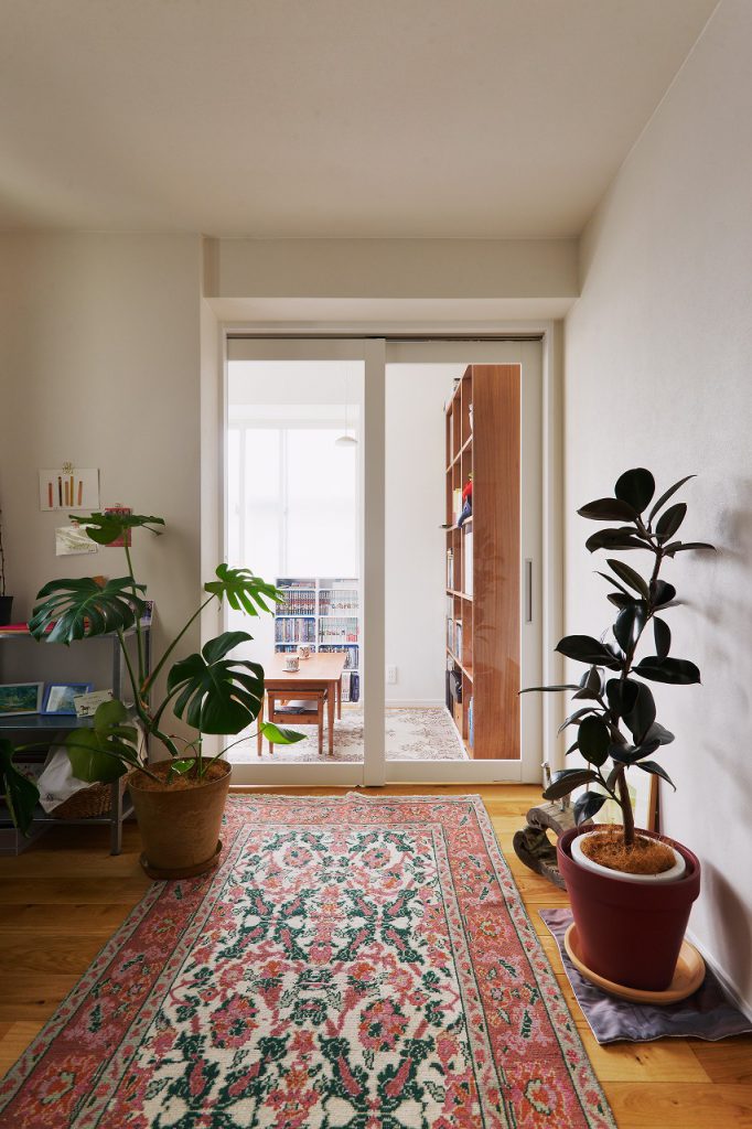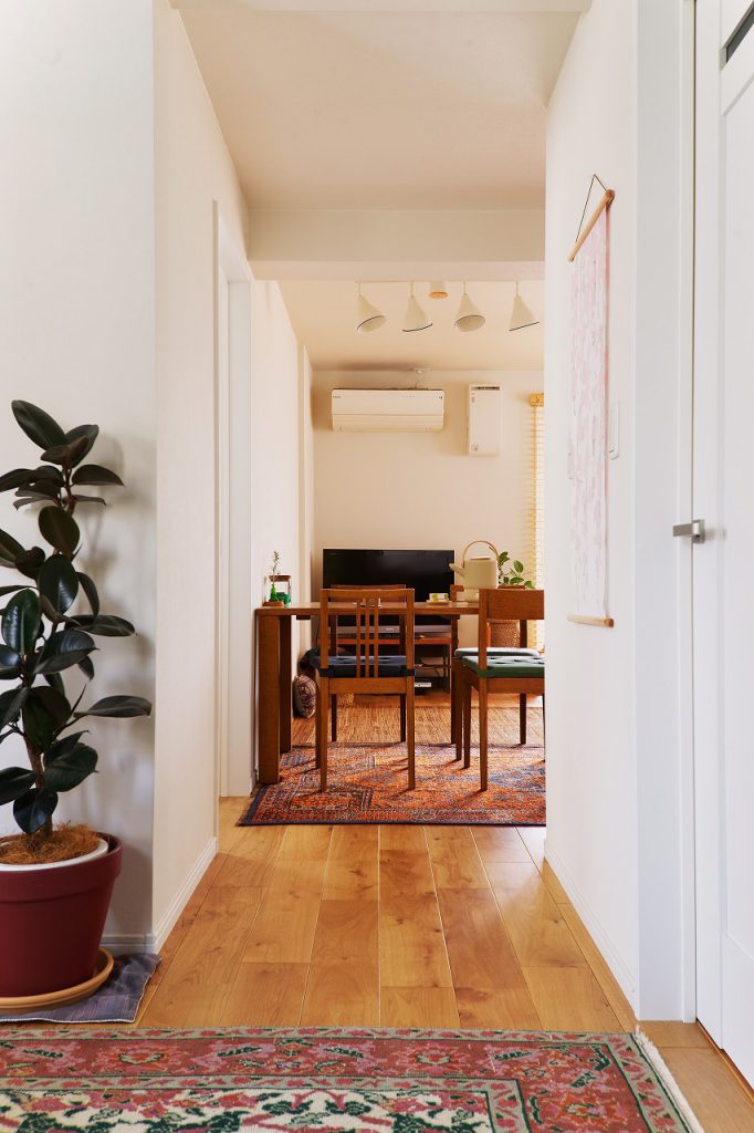 広く見せる工夫:抜けない壁が多く、扉を少なくして部屋の繋がり感をもたせています
