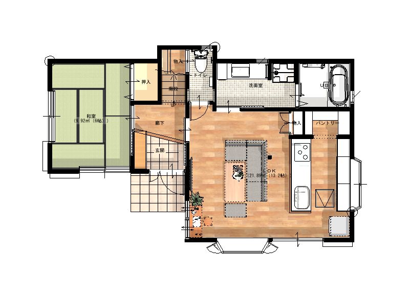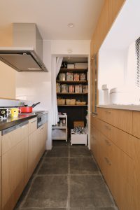 収納計画:床にモノを置きたくないというご要望をパントリーやキッチン背面の大容量収納で解決しました