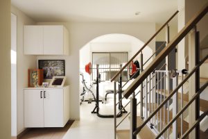 急な階段:階段の位置は大きく変えずに距離を伸ばすことで、勾配を緩やかにし上り下りしやすくしました。