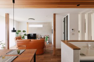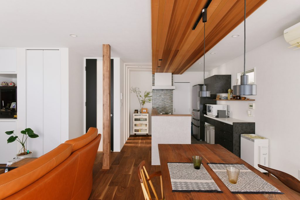 廊下、屋根、外壁、造作家具、トイレ、キッチン、洗面、浴室、リビング、ダイニング、寝室