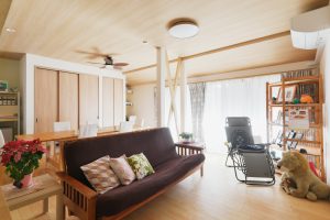 寒さ、湿気対策:外壁面、床下の断熱材を充填。床暖房採用。LDKに面する大きな窓はすべて断熱窓へ交換