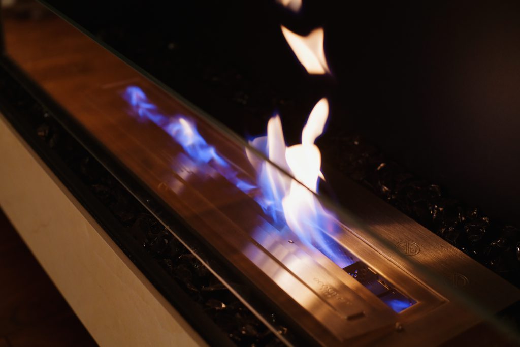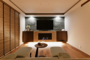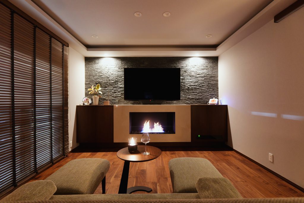 リビングに設けた「バイオエタノール暖炉」は、燃焼しても灰や煙を排出しないため、煙突不要で設置可能な優れものです。パークハイアットやフォーシーズンホテルといった高級ホテルでされており、高級感を演出するアイテムとして注目されております。※下記公式HPより引用
