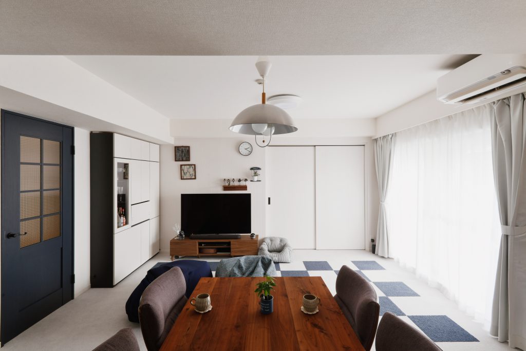 気に入っている所は、キッチンが対面式になり、部屋全体、テレビも見通せるところ。リビングと寝室を引き戸で開放できるようにしたので、愛犬とボール投げや追いかけっこが充分できるスペースができたこと。リビングのドアやアクセントクロス、カーペットの模様など、自分達の好みを反映させた部分は見る度に嬉しくなります。