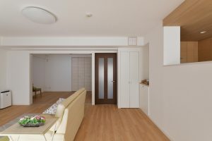 お片付けが上手なK様。築20年とは思えないほど綺麗に暮らされていたこともあり、リビング入り口についていた収納キャビネットはそのまま移設して活かしました。