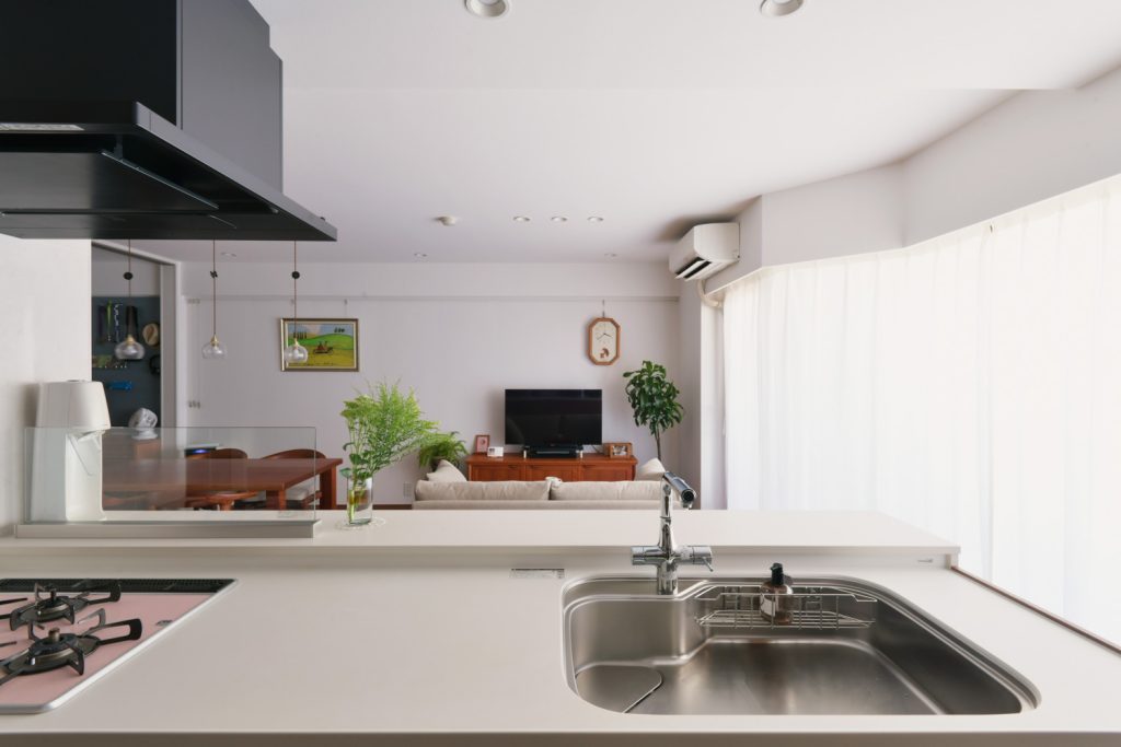 キッチンは対面化にあたり配管移動の関係で床高が上がると他社様からは言われていたそうですが、キッチンの移動範囲を最小限にすることで、フラットな床でつながるキッチンを実現することができました。