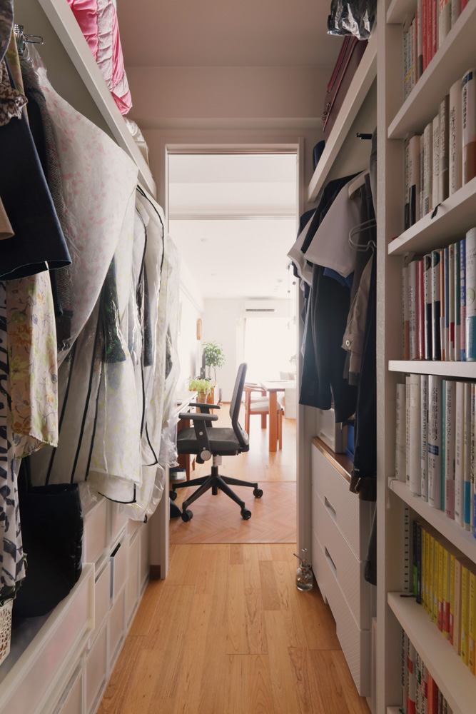 フローリングや建具の状態が良かったためコスト面も考慮して、北側居室の床と建具全箇所の既存利用を最初に提案させて頂きました。そのうえでご要望の「OPENな対面キッチン」や「書斎」が叶えられる間取りを検討し、最適な間取りがご提案できました。
