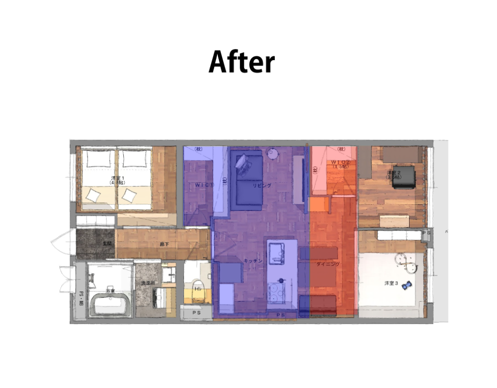 子供が生まれ、4人家族となり、収納や間取りを見直して暮らしやすくしたかったため。