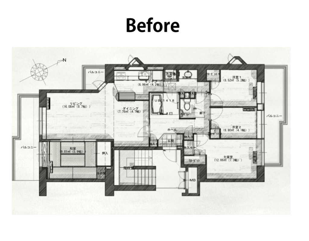 元々は3つ部屋それぞれが孤立している造りでしたが、ご夫婦で快適に過ごせるように、寝室〜書斎〜クローゼットと回遊できる動線へと生まれ変わりました。