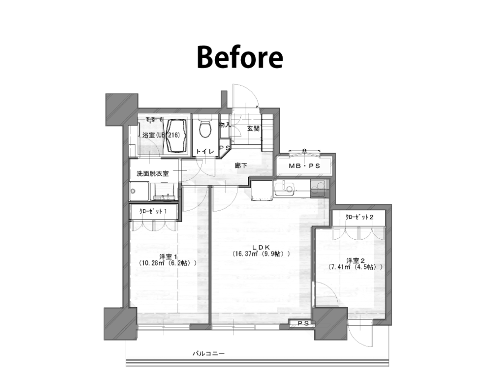 弊社で何度かリノベーションをしてくださっているお客様のお住まい。以前のリノベーションで気に入っていただいた要素を活かしつつ、今回の住まいならではのこだわりも新たに取り入れました。