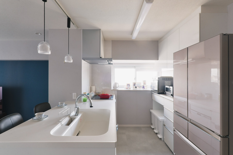 築53年のマンションを27年前に購入し、今回リフォームをお願いしました。担当のMさんに予算を聞かれ、いろいろな案を出してもらいました。古いマンションなので拘っていたキッチンが出来ないかもしれない!と途中アクシデントもありましたが、昔の図面を見たり調べたりして、希望通りのキッチンが出来ました。設計士のKさんには何度も図面を変更してもらったり、アドバイスを頂き大変お世話になりました。収納を増やしたくて何ヵ所か作って頂きとても気に入っています。お二人にはとても寄り添ってもらい、私達の希望を叶えて頂きました。また何かありましたらお願いしたいです。