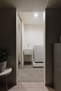 洗面台をリビングに移動したため、排水の経路を確保するためには工夫が必要でした。