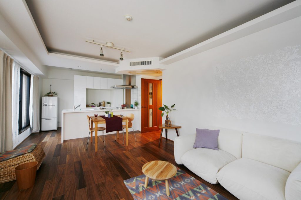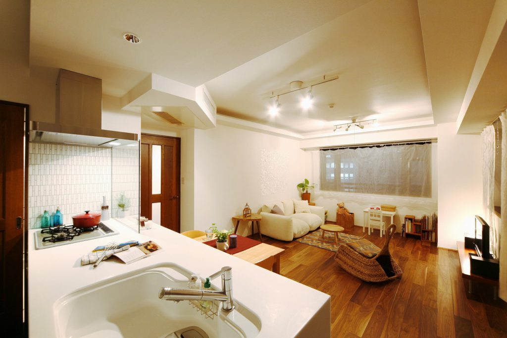 内装が古くフローリングの傷みが気になったほか、インテリアも自分たち好みに変更し、キッチンは対面式でしたが、袖壁があり、開口が狭いのも気になっているということなどお悩みがありました。