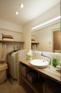 モノと現場にあわせた造作収納は、『見せる』、『見せない』をはっきりさせ、すっきりとした空間を可能にしています。