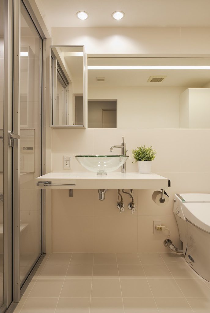 カナダで住んでいたマンションの使い勝手やデザインを取り入れたいというご希望にそってバス、洗面、トイレを1つにする3in1スタイルのバス・サニタリールームを実現しました。