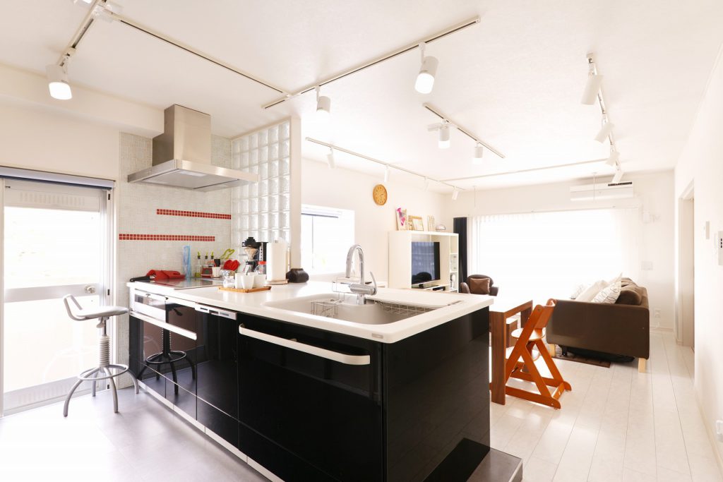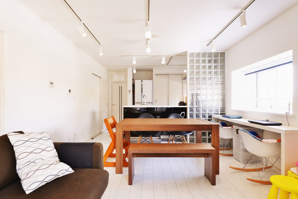 できないと思っていらした対面キッチンをご提案して、間仕切りにガラスブロックを採用。