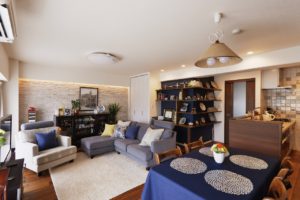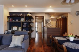RC壁構造の為、プランニングには制約となりましたが、それを逆手に取ったレイアウト、収納計画に工夫を凝らし、無駄のない空間づくりが出来たと思います。インテリアも『デルフト焼き』を基準として素材選びをすることで、他にはない独特な仕上がりに。