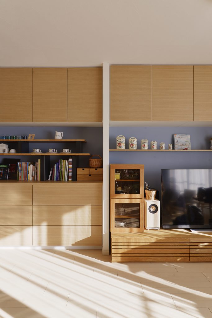 海外で買いそろえた食器を入れる場所や、新しく増える家族のためにも、収納を充実させたかったので幅5メートルの壁面収納をご要望でした。