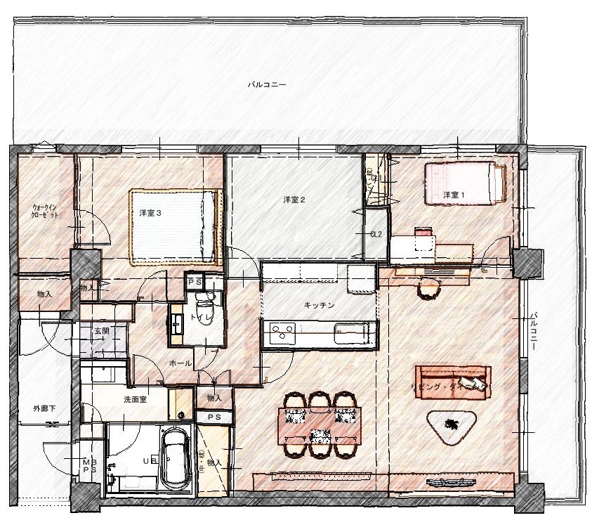その他、トイレ、キッチン、洗面、浴室、リビング、ダイニング、寝室、廊下