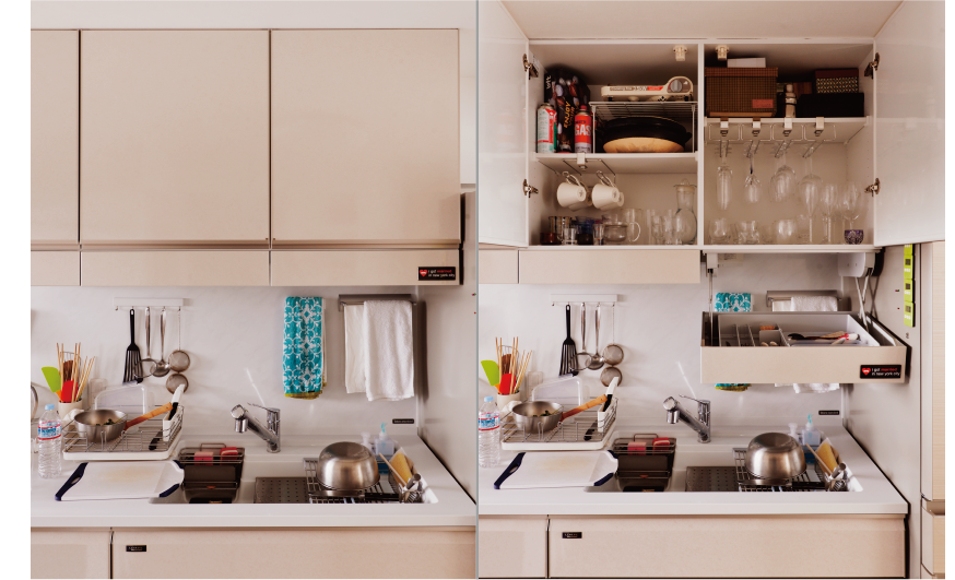 キッチンの高さもに合わせて、背面に調理スペースまで作っていただき、限られたスペースをフル活用していただき、とっても料理がしやすくなりました。