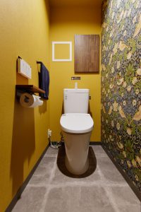 ウォールナット系の床材・建具と、紺や青といったアクセントの組み合わせが印象的なご自宅になりました。