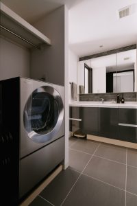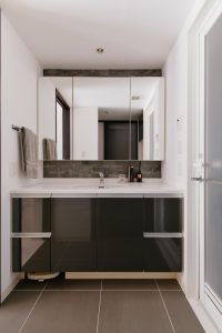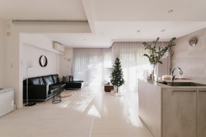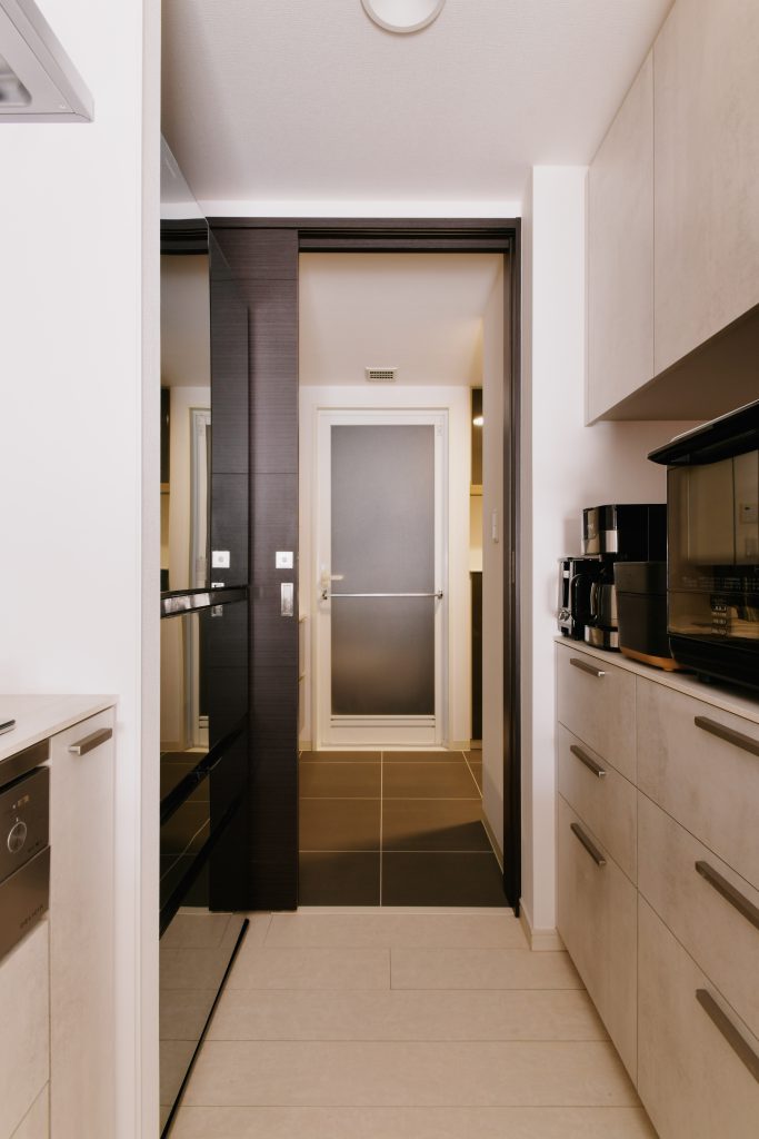 マンション固定のPSの位置や寸法を考慮しつつ、お施主様のご希望のスタイルを実現するためには、オーダーキッチンが最適でした。キッチンの機能性はもちろん、お家全体がシックなモノトーンスタイルになり、お施主様にも大変ご満足いただけました。
