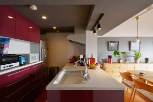 当初は水回りの交換とキッチンを明るくしたいというご要望でしたが、お手持ちの家具や小物が素敵なものばかりでしたので、リビングの内装工事までご提案しました。素敵な家具がより映えるようにしたいということになり、全体的な内装や照明計画のご相談へと膨らんでいきました。色の好みや小物の好みの話をたくさんさせて頂き、楽しく打ち合わせが進みました。