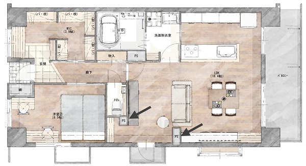 マンションには必ずあるパイプスペース(PS)。リフォームの際はあえてアクセントにしたり、うまく収納スペースに取り込んだりと工夫が必要です。
