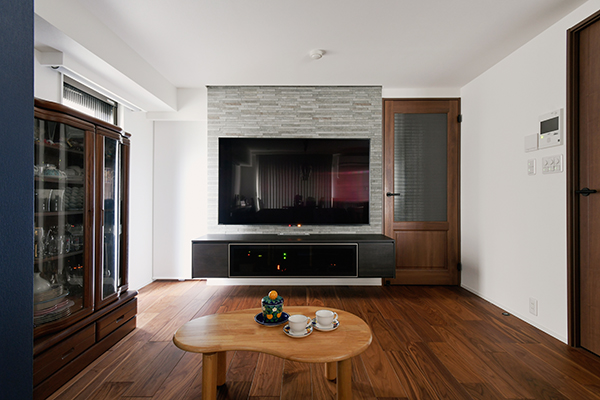 ▽S様のプランではリビングのPSは濃紺のクロスでアクセントに